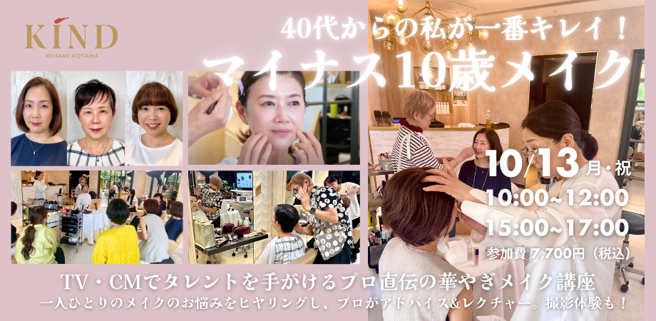 講師は、エンターテイメント業界で現役で活動するヘアメイクアップアーティストたち。所属するKINDの公式YouTube「カインドチャンネル」でも、OBJ(オバジョ)世代ならではのメイク術を披露する「OBJのメイクルーム」を公開中。「【50代以上向け】ナチュラル綺麗な下地メイク」「下がった口角をアップさせる若見えリップ」「OBJまぶたのビューラー術」など、時には自らスッピン肌をさらけ出しながら、等身大のメイク術を配信しています。テンポの良い2人の掛け合いや飾らない人柄も魅力です。